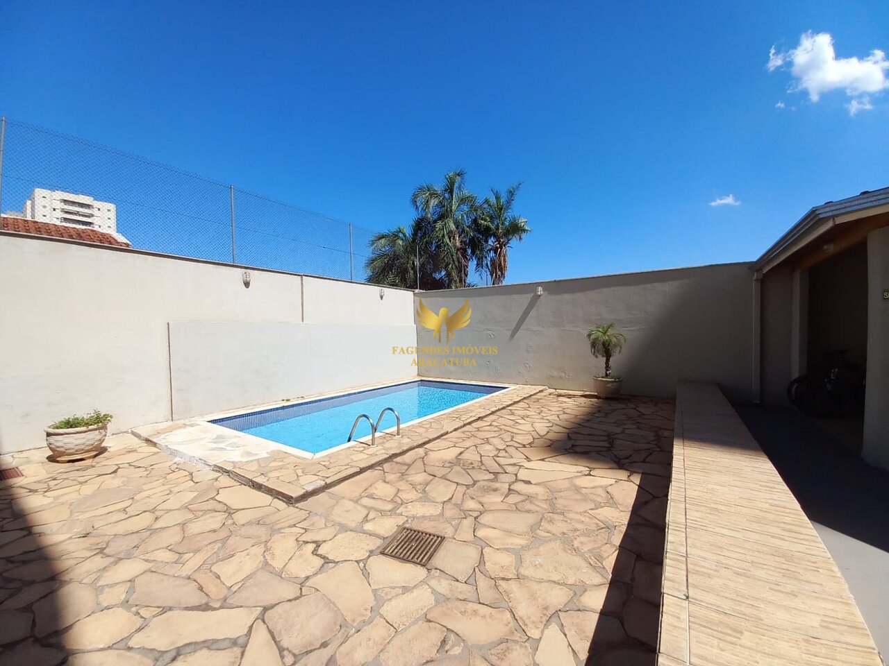 • Possui piscina
